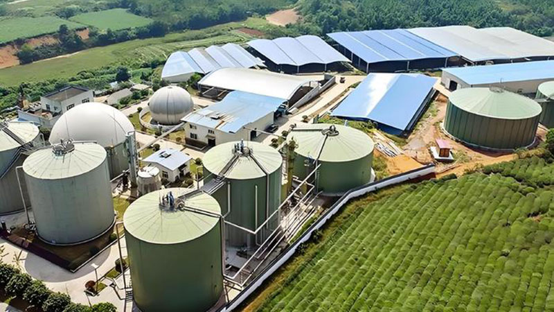 本工程為鴨糞發酵工程,采用“水解預處理 +CSTR 兩級發酵 + 熱電聯產 + 高精度自動控制”的工藝路線,解決了鴨糞沼氣工程中普遍遇到的進出料難及產氣量低的問題,年處理自身及周邊養殖場鴨糞污共約2.19×104t,發酵主體規模為8000m3,年生產沼氣約2.34×106m3。