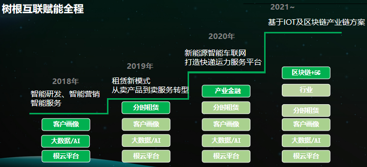 不僅如此,樹根科技還為優力賦能,助力其開展基于IOT及區塊鏈業務,從最初的鋰電的物聯監控為其提升產品質量,到基于設備數據的精準客戶畫像和遠程售后服務,再到架構產業鏈金融的融資租賃和經營性租賃創新模式的端到端服務。