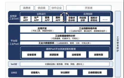 因此,工業(yè)互聯(lián)網(wǎng)平臺自下而上分別為解決設(shè)備互聯(lián)的邊緣層、云基礎(chǔ)設(shè)施所在的IaaS層、平臺層PaaS層和工業(yè)應(yīng)用層SaaS層。