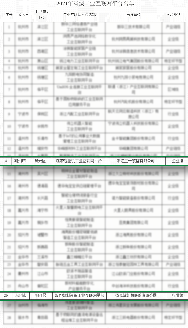其中,由杰克縫紉機股份有限公司(以下簡稱為杰克縫紉機)和樹根科技聯合打造的智能縫制設備工業互聯網平臺(行業級),以及由浙江三一裝備有限公司和樹根科技聯合打造的履帶起重機工業互聯網平臺(企業級)同時入選。