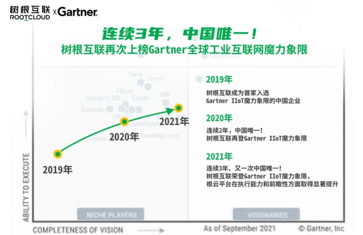 2016年成立至今,短短5年內(nèi),樹根科技股份有限公司(以下簡(jiǎn)稱樹根科技)發(fā)展迅猛。201612月,樹根科技發(fā)布1.0版本的工業(yè)互聯(lián)網(wǎng)平臺(tái)——ROOTCLOUD(根云);2018年,樹根科技落戶廣州;2019年至2021年,樹根科技連續(xù)3年入選國(guó)際咨詢公司Gartner《全球工業(yè)互聯(lián)網(wǎng)平臺(tái)魔力象限報(bào)告》,是目前唯一一家入選的中國(guó)工業(yè)互聯(lián)網(wǎng)平臺(tái)公司,2019年至2020年,根云連續(xù)兩年入選工信部的跨行業(yè)跨領(lǐng)域工業(yè)互聯(lián)網(wǎng)平臺(tái)(以下簡(jiǎn)稱雙跨平臺(tái)),是目前全國(guó)15大雙跨平臺(tái)之一;202012月,樹根科技完成C8.6億元的融資,估值超11億美元,成為中國(guó)工業(yè)互聯(lián)網(wǎng)獨(dú)角獸企業(yè)。