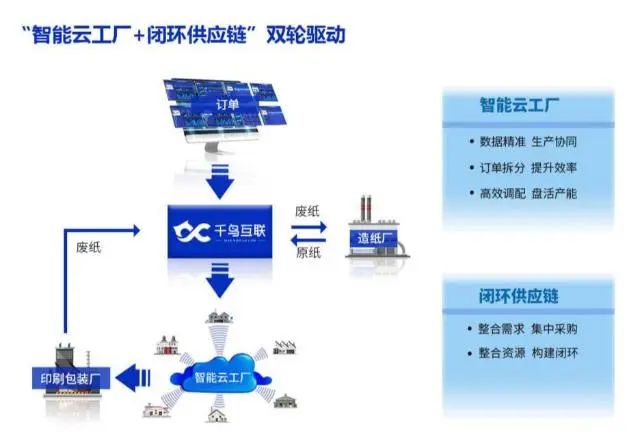 工業(yè)互聯網技術在各行各業(yè)的應用不僅帶來了創(chuàng)新商業(yè)模式,還在賦能產業(yè)鏈上下游升級方面表現突出。千鳥互聯的一系列產品與服務,端到端打通造紙廠、紙貿商、印刷包裝廠、廢紙打包站多個角色,形成從包裝訂單生產到原紙再到廢紙的數字化業(yè)務閉環(huán),實現供應鏈整體的降本增效。