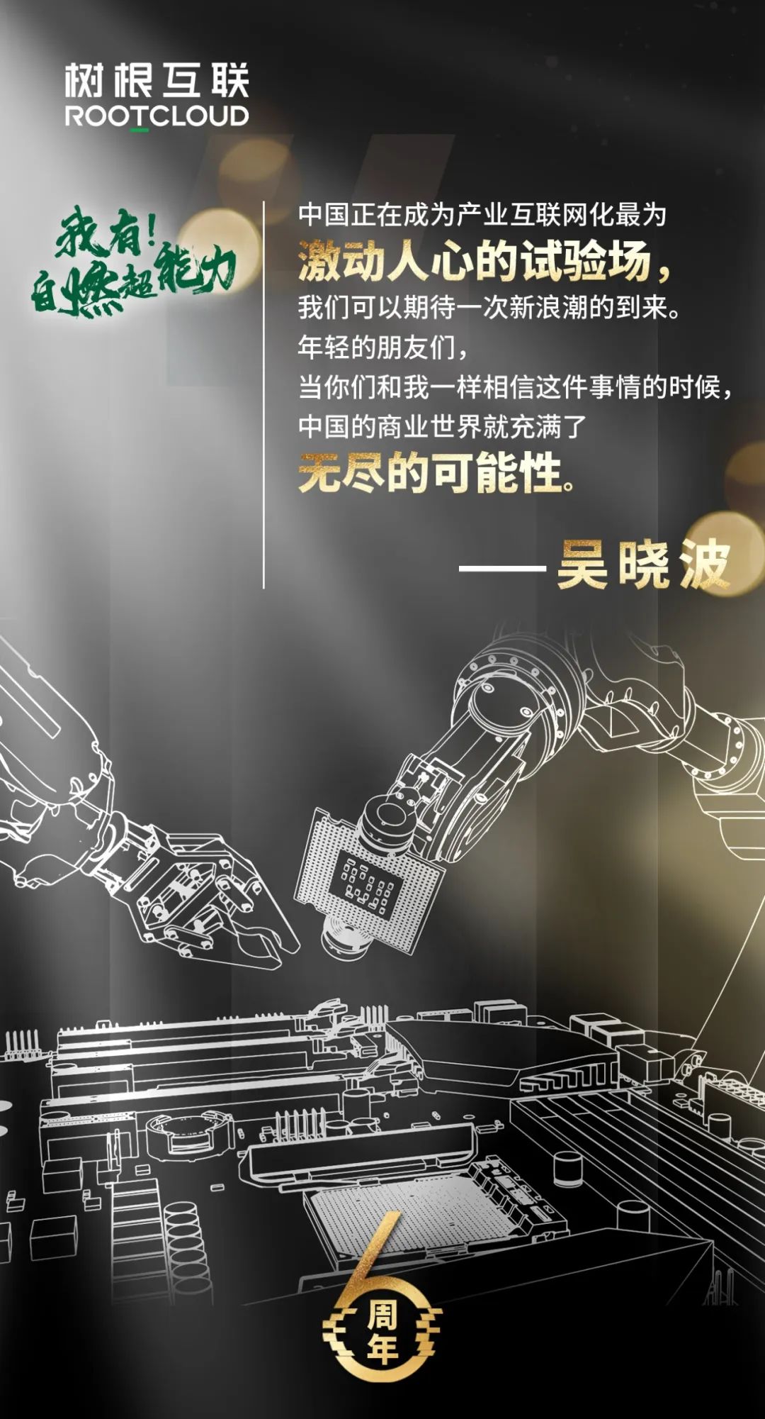 中國(guó)正在成為產(chǎn)業(yè)互聯(lián)網(wǎng)化最為激動(dòng)人心的試驗(yàn)場(chǎng),我們可以期待一次新浪潮的到來(lái)。產(chǎn)業(yè)互聯(lián)網(wǎng)將引發(fā)硬件革命和應(yīng)用性革命,因?yàn)橹袊?guó)是全球第一的制造大國(guó),全球最大的消費(fèi)市場(chǎng)。這次浪潮與我們的產(chǎn)業(yè)和消費(fèi)息息相關(guān),我們每個(gè)人都可能是革命者和被革命者。年輕的朋友們,當(dāng)你們和我一樣相信這件事情的時(shí)候,中國(guó)的商業(yè)世界就充滿了無(wú)盡的可能性。——吳曉波