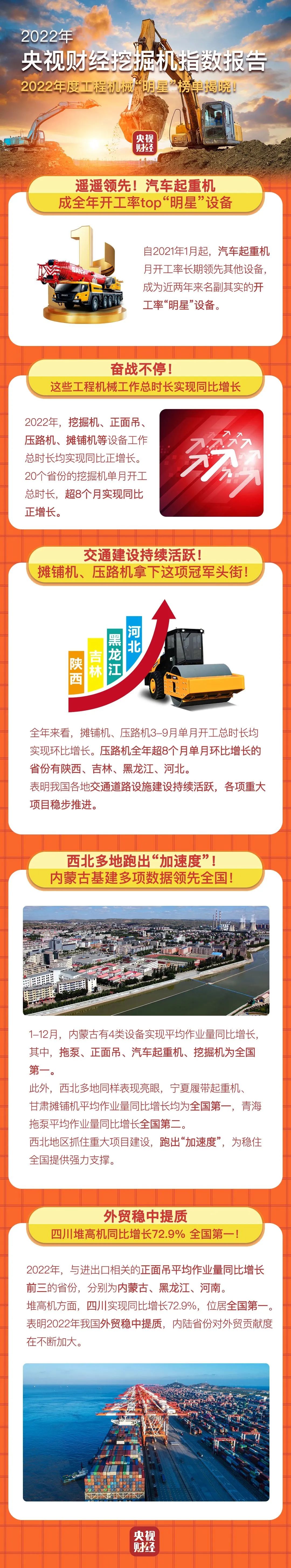 2022年,挖掘機、正面吊、壓路機、攤鋪機等設(shè)備工作總時長均實現(xiàn)同比正增長。