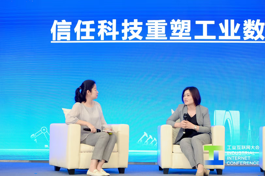 在論壇“信任科技重塑工業(yè)數(shù)據(jù)要素流通”的主題對話環(huán)節(jié)中,來自樹根科技、中國移動研究院、中化創(chuàng)新研究院、上海萬向區(qū)塊鏈的嘉賓們就“區(qū)塊鏈對工業(yè)數(shù)據(jù)流通的落地價值”“數(shù)據(jù)資產化的價值釋放”等關鍵議題進行探討。