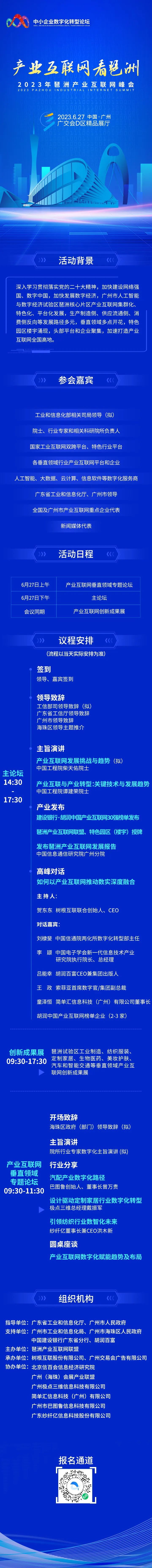 作為上述國(guó)家級(jí)博覽會(huì)、省級(jí)論壇平臺(tái)的重要內(nèi)容,峰會(huì)由省工信廳、市政府指導(dǎo),市工信局、海珠區(qū)政府等作為支持單位,將邀請(qǐng)政府部門(mén)、專(zhuān)家學(xué)者參與,舉行國(guó)家工業(yè)互聯(lián)網(wǎng)雙跨平臺(tái)(樹(shù)根科技)、特色行業(yè)平臺(tái)、產(chǎn)業(yè)互聯(lián)網(wǎng)全國(guó)頭部企業(yè)高峰對(duì)話,集中展示琶洲產(chǎn)業(yè)互聯(lián)網(wǎng)集群化、特色化、平臺(tái)化發(fā)展生態(tài),打造產(chǎn)業(yè)互聯(lián)網(wǎng)全國(guó)高地。
