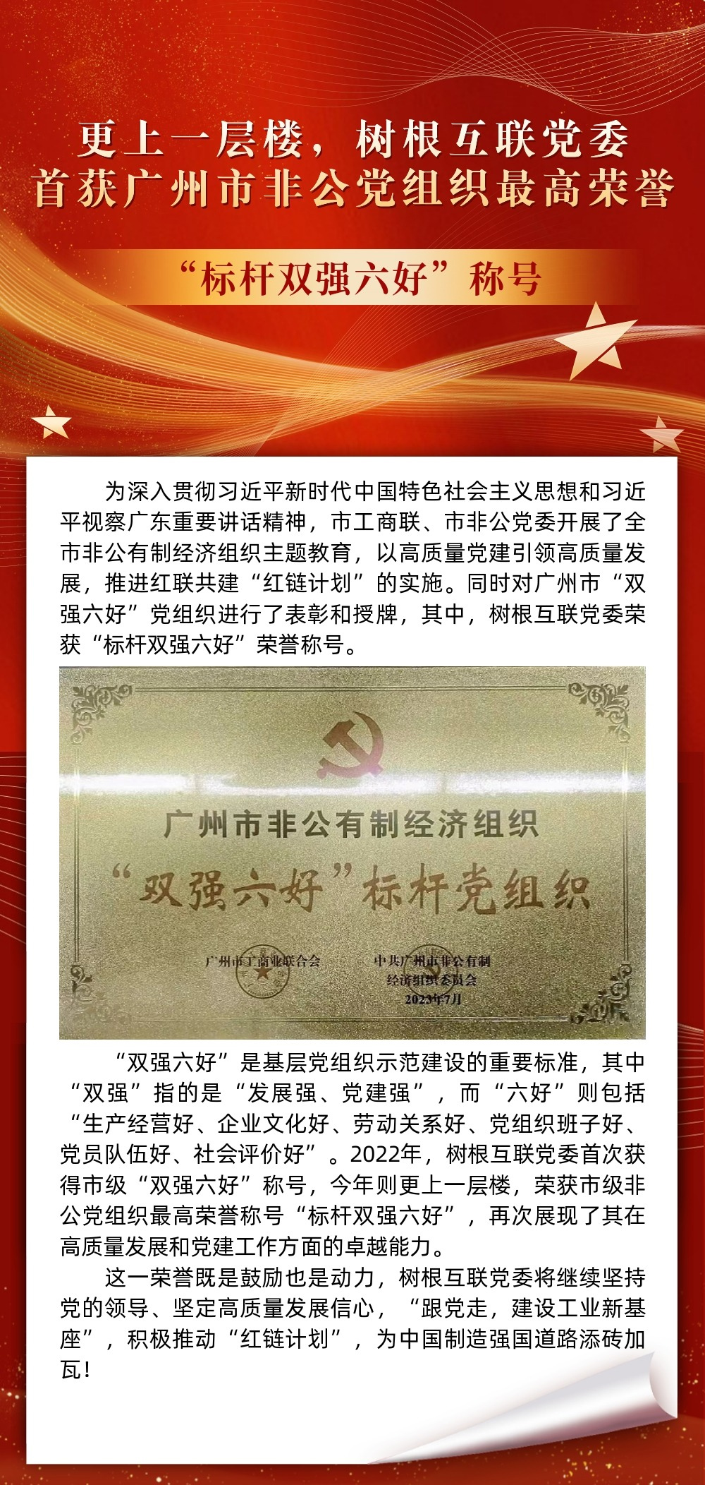 樹根科技黨委獲評“雙強六好”標桿黨組織稱號