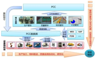 廠房建設有 PCC生產控制中心,通過對生產過程中物料、設備、輔助生產資源等數據采集,并集成PDM\ERP\CRM\MES等應用系統,實現訂單執行與生產現場的集中管理與調度。核心業務包括生產計劃與執行管控、質量管控、物流管控,以及生產現場視頻監控等。