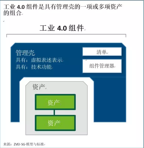 管理殼是一種遵循各種相關標準,對工業4.0組件的資產特性及技術功能,進行數字化描述的一種殼式管理軟件。有了可用軟件平臺來查詢、讀取的自我描述式的數字化“資產說明書”,資產由此而變得可管理、可操作。