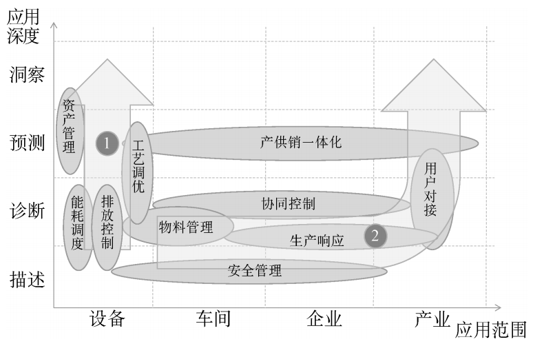 (1)在智能化層面,流程行業(yè)利用“智能+工業(yè)大數(shù)據(jù)+模型” 從設(shè)備側(cè)著手,實(shí)現(xiàn)更有效的設(shè)備健康、能耗、排放管理;多品種、小批量離散行業(yè)利用仿真模擬,從設(shè)計(jì)和工藝側(cè)切入,實(shí)現(xiàn)復(fù)雜產(chǎn)品多專業(yè)協(xié)同設(shè)計(jì)與仿真驗(yàn)證;少品種、大批量離散行業(yè)利用“智能預(yù)測(cè)+檢測(cè)”解析從產(chǎn)品質(zhì)量切入,打造更完善的質(zhì)檢、追溯、服務(wù)等全方位體系。