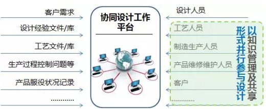 協同設計研發(fā)平臺一方面通過數據、產品數據、運營數據管理為基礎,將設計經驗、工藝信息、制造信息、產品服役過程信息(零部件壽命、質量問題記錄等)、客戶需求等統一納入設計需求范疇,也即完成客戶等納入需求考慮,保證設計需求的全面響應,實現定制化奠定基礎,逐步協助企業(yè)服務化轉型;另一方面具體執(zhí)行設計研發(fā)業(yè)務支持基于多學科融合的綜合,支持多學科并行設計等。