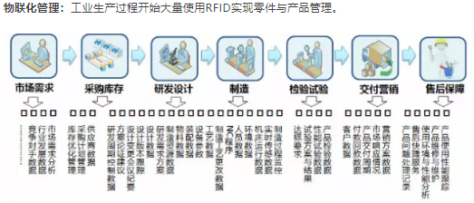 物聯化管理:工業(yè)生產過程開始大量使用RFID實現零件與產品管理。