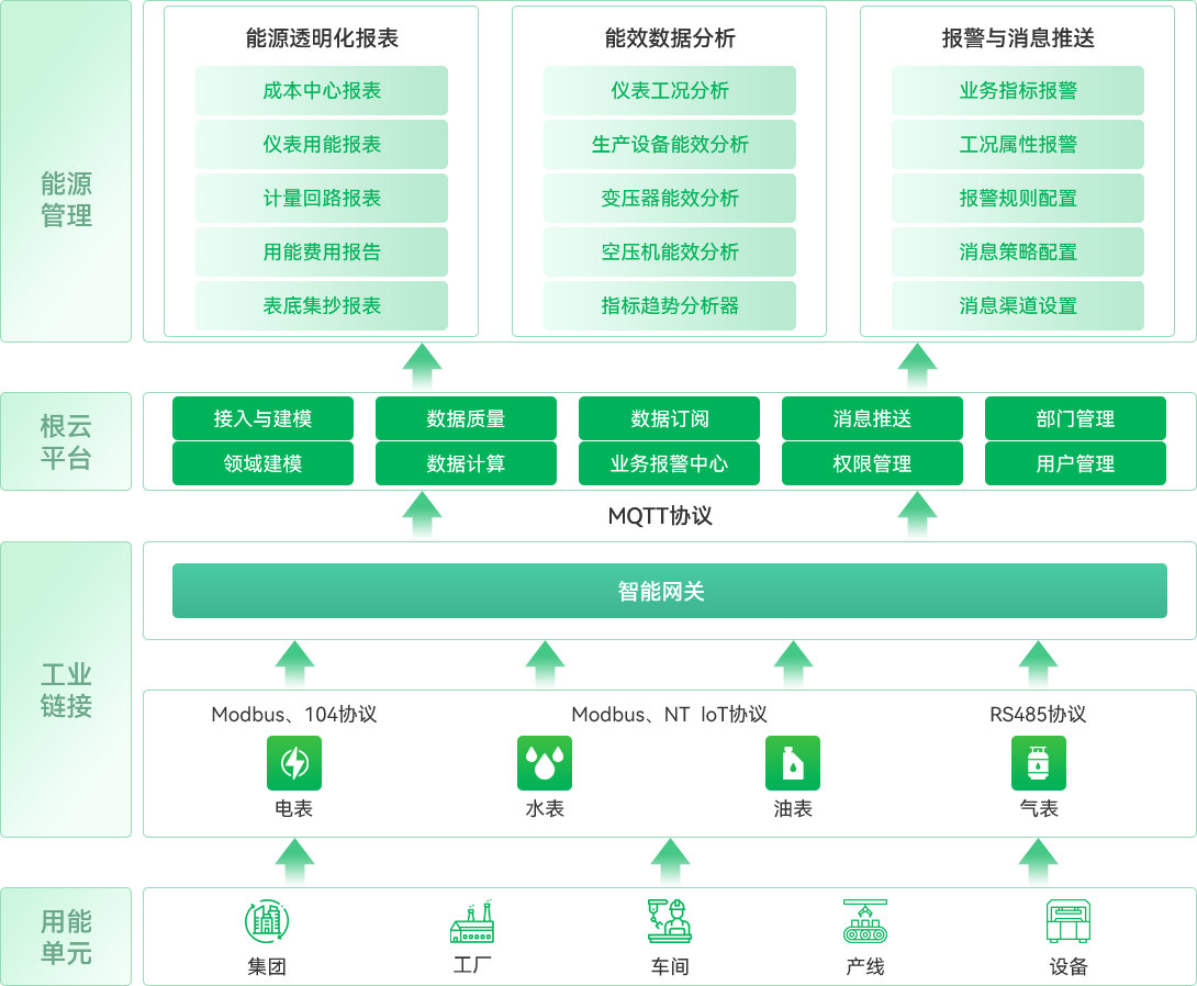 系統支持多維度構建能源成本中心,各維度的用能對象與指標均可自定義,解決能源統計粒度不夠細化的問題,為技改節能、指標優化提供有力數據支撐。