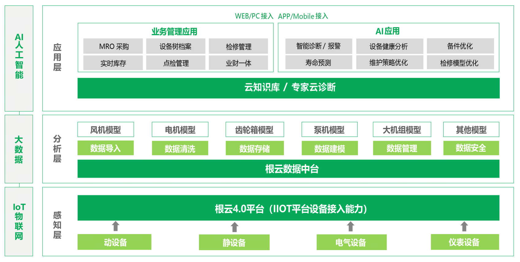 依托物聯網平臺獲取設備數據,結合基礎版設備績效管理系統,實現設備預防性維護的同時,做好設備績效預測管理